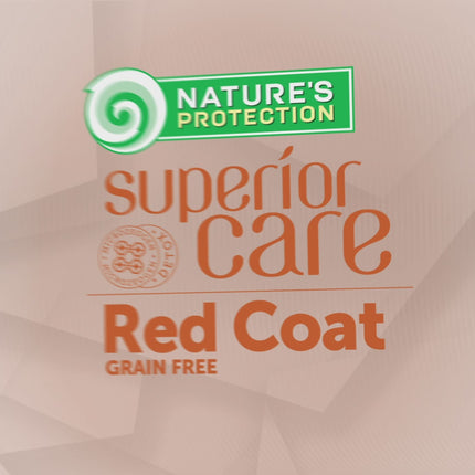 Nature's Protection Superior Care Red Coat – Salmon Grain Free is a high-quality complete pet food with salmon and krill, specially formulated to improve the natural pigmentation of red and brown coats, strengthen joints, and support skin, digestive, and brain health.
